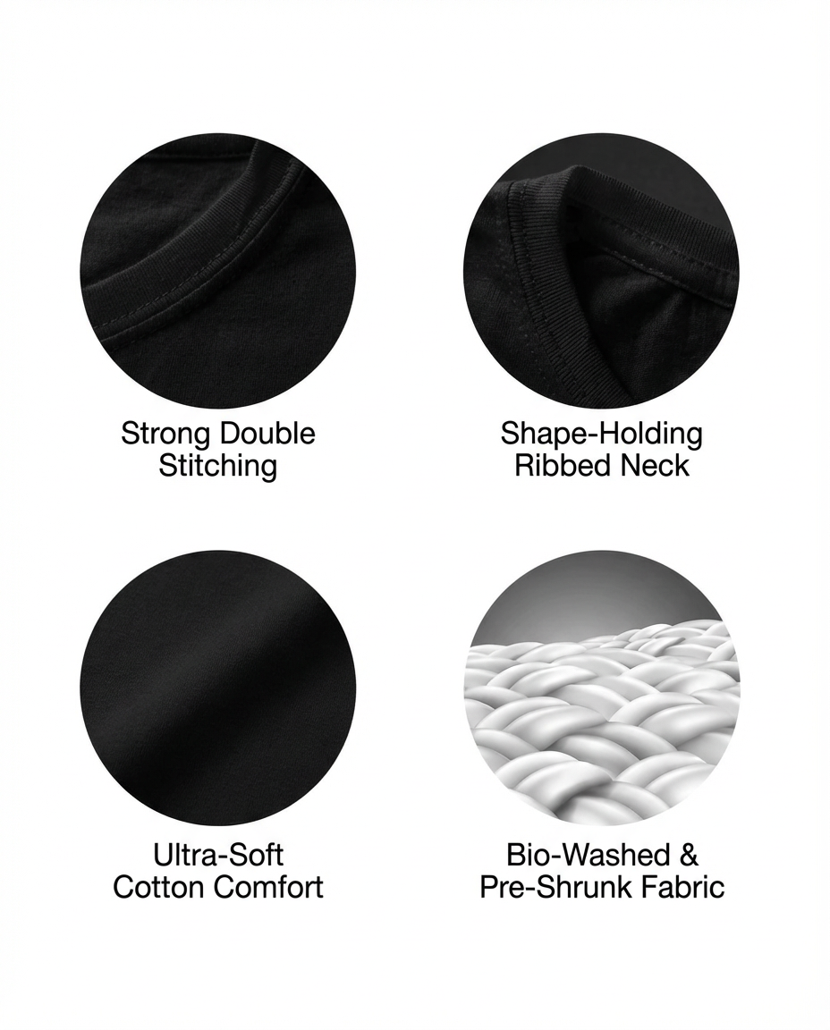 Crafted from premium 100% cotton at 180 GSM, this unisex tee delivers effortless everyday wearability with a lightweight, breathable construction. The versatile regular fit suits all body types, making it an essential wardrobe staple. Maintain its quality by washing inside-out in cold water and tumble-drying on low heat; iron from the reverse side to preserve the print and fabric integrity.
